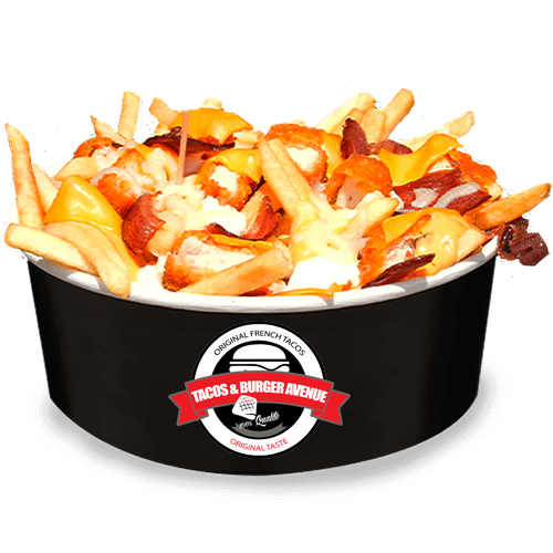 Cordon bleu- tenders- sauce algérienne- sauce fromagère- cheddar- gratine bacon raclette – frites